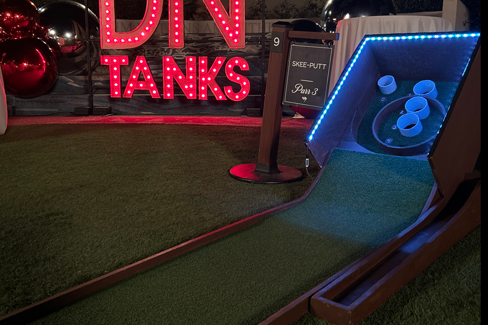 Rent up to three of our most popular games on its own or as party of a mini golf party entertainment package. Complete with putters in requested sizes, a putter stand, and golf balls. Combine with a mini golf course rental for 20% off of Skee-putt (Gets you two Skee-putt holes when rented with a mini golf course). Level surface and 20 sqft required. Standard rental lasts up to 4 hours (additional hours $50/hr).
